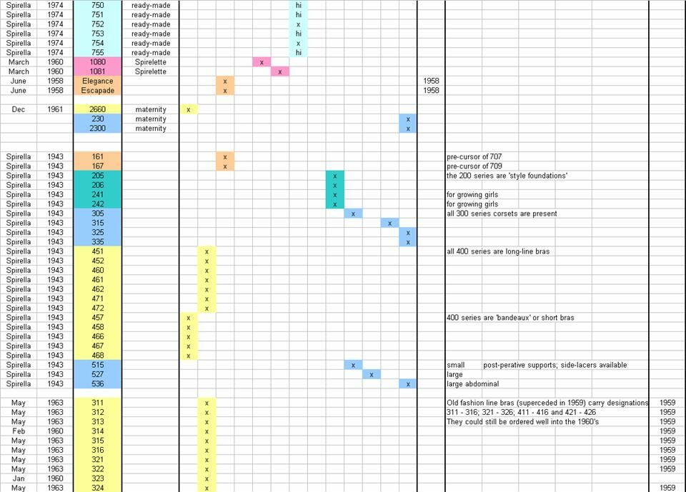 And as for brassieres, well they were all over the place. Some even had names rather than numbers!