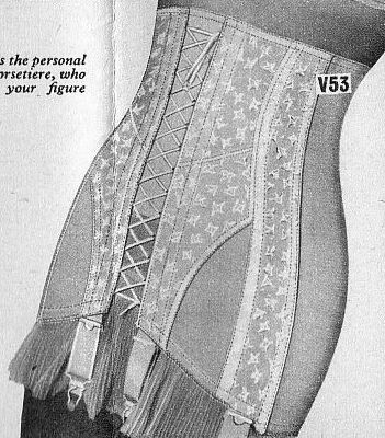 Personally, I hanker after the V80. Busk-front and fan-laced. There's no quicker corset to put on and adjust. My beloved Spirella 305 requires numerous hooks and eyes, and then a brief tightening of the laces. Smooth and elegant, but not rapid!