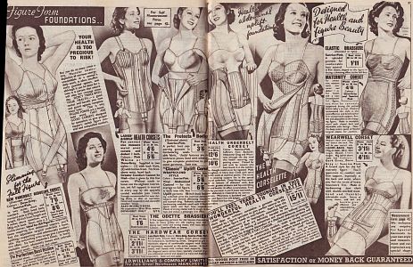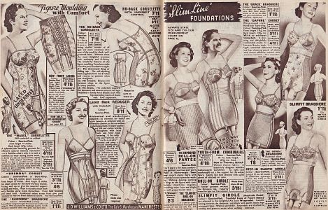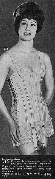 The laced-back corselette (left), makes one of its last appearances in Britain. This mainstay of the German Hausfrau would last for another two decades in Germany. The corset shop proprietor of St. Leonards once said "Women don't understand these things any more!" |