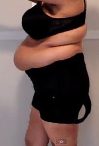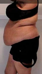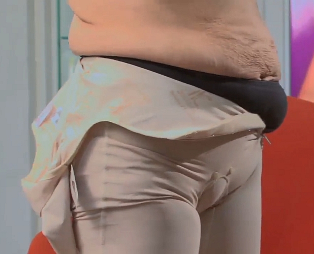 Mind you, Ardyss, who make some of the most powerful modern girdles, show that some pictures are simply not faked. These pictures come from a film showing an overweight women struggling, and I mean really struggling into her Ardyss Body Magic. Mind you, the same effect can be used (and frequently was in the 1960's) by squeezing oneself into a girdle six sizes too small. Many is the husband who discovered on his wedding night that his bride was not quite the shape that she had hitherto portrayed!