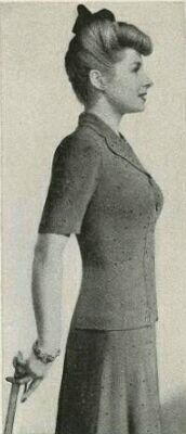 Good use of the mirror is achieved is this charming before and after from 1943. It suggests, however, that the time taken to struggle into that all-in-one Spencerette allowed her critical friend to go home and change!