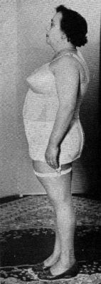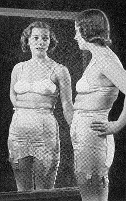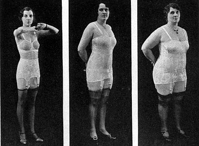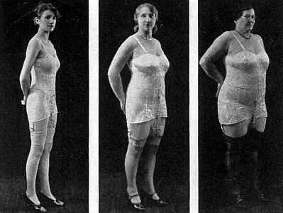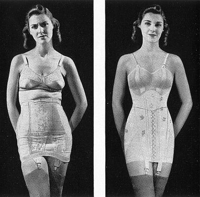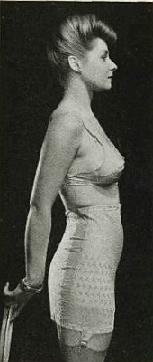 In this case, the power of the Spencer girdle has actually caused the model to shrink latterally. Where did all that flesh so. We have mentioned elsewhere that flesh cannot be compressed. |