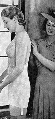 Spencer 1934 Farewell to bulging abdomen and Lordosis Curve Backline “Spare tires” – Hips and Diaphragms vanish! 1935: I lost every bulge in a Spencer of this airy fabric To lose that bulge – Spencerize! You can lose that bulge To correct that unlovely slump – Spencerize! Delightfully cool and my bulges are gone. Her mirror repeated her husband’s advice! Hips 3 ½ inches less in her Spencer I lost several birthdays when I lost these bulges I reduced my hips 3 5/8 inches in a light-as-air SPENCER “I see you lost your Lordosis Curve Backline” “Yes, thanks to my new SPENCER” |