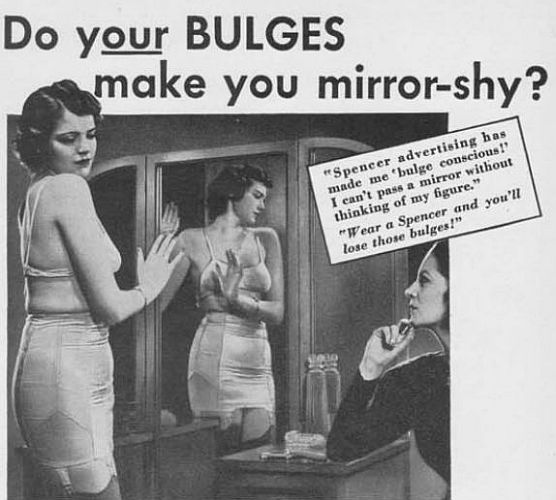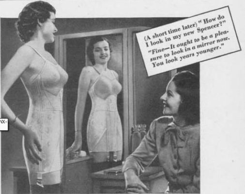 Just in case your self-doubt was under-developed, just leave it to the marketing department to sow the seeds of future profit! Both Spirella (left) and Spencer (1941; right) used this powerful technique.