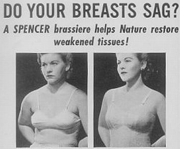 In 1949, and for decades afterwards, Spencer asked the most personal of questions "Do your breasts sag?" Well they will if you don't hold your shoulders up as the model on the left clearly demonstrates! |