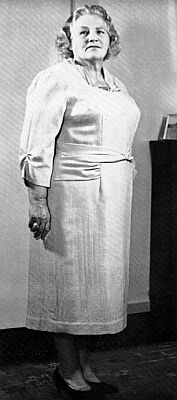 I'm a fan of whoever Mrs. R is., partly because my figure, far from its proportions of the 1960's, has become more like this lady's, although not quite!! Regard the picture below. Mrs. R. has purchased, at quite some expense, a Fashion Line brassiere and a 305 corset. Her shape has improved, she feels better both physically and psychologically and her dresses fit her figure. She is happy; her husband is happy, and isn't that what corsetry is all about !
