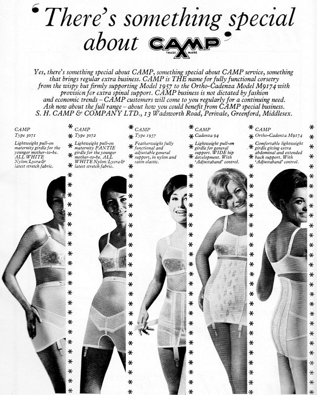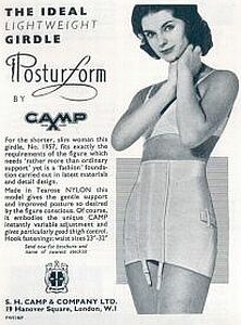 conventional corset, I'd buy a Gossard, or a Spirella if I could afford it." Nevertheless, Camp ensured that whatever one of their products you selected, that troublesome spine would have have been secured, and any protuberance of the tummy completely flattened. The poor sufferer of the poorly back, at least would attain a stunning figure. I pity those today who are proscribed hideously sweaty, and expensive neoprene wrap-arounds for their ailments. A corset should be a corset, not an apology! |