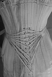 Various authorities refer to both “fan-lacing” and “cluster-lacing” corsets. I have used both terms interchangeably.
