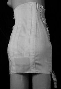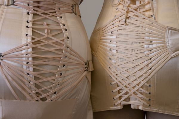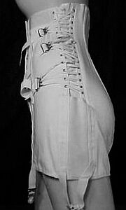 The fan-lacing principle, and the mechanical advantages involved, were adapted, not just for back-lacing, but side-lacing. When a back support garment needs two or four heavy, rigid steels to be placed securely against the wearer's spine, the side-lacing corset comes into its own.