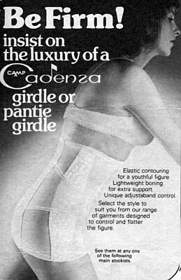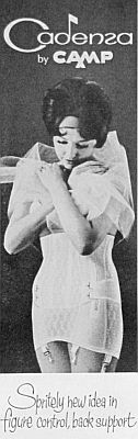 A genuine CAMP advertisement from the late 1970's (middle) uses the age-old ploy of demonstrating a foundation garment on a figure decades younger the clientele for which it was marketed. Strangely, the advertisement on the right (which is not a CAMP product) shows that in the 1990's, the system is still around, and in this case aimed at a far younger audience.