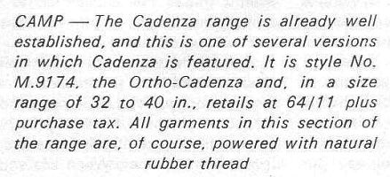 CAMP employed many different model series, however, fairly consistently throughout the range, an M designation implied a 'special' or 'surgical' garment. Note that the M.9174 girdle is called an 'Ortho-Cadenza'.