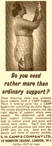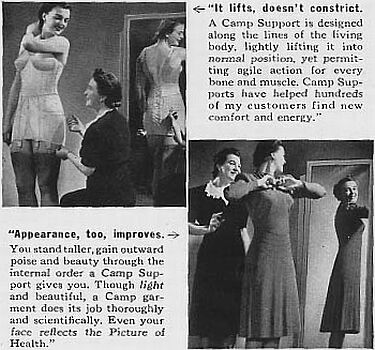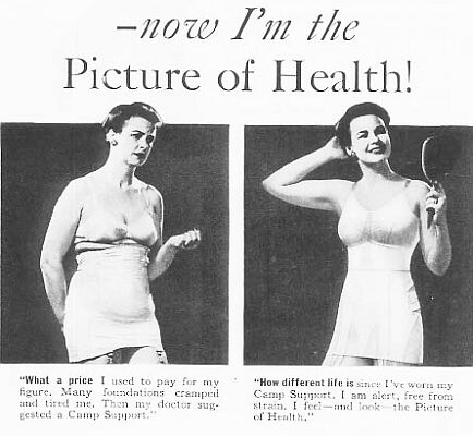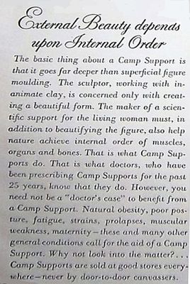 Camp, as did so many other firms, sold the overall benefit of the corset to the wearer's well-being. How you disguised the webbing and straps was, however, another matter!