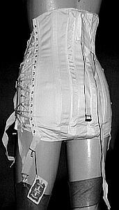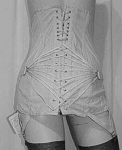 Mummy and Granny wore Camps for as long as I could remember. I supposed that one day, when I became old enough I would wear one as well; it was a normal part of a ladies underwear. The cluster-lacing seemed an eminently practical way to tighten the garment. In our household they were quite unexceptional and I was surprised when a girlfriend from school remarked on "those old-fashioned torture devices" when we passed through the kitchen on washing day, corsets and bloomers hanging from the pulley in riot of tea-rose and white. It certainly gave Mummy a flat tummy which patently many of my friends mother's did not possess.