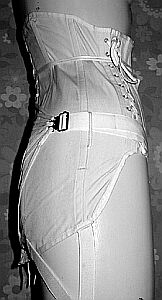 Shortly afterwards, and I was wearing the new corset regularly, much to the improvement of my figure, I noticed that whilst dressing in our bedroom, my husband, instead of snoring away his last precious moments in bed, was regarding me intently as I engaged the straps on my powerful new ally. "What is that?" he asked. I explained the principles of the corset and he even clambered out of bed to take a closer look. I didn't know whether to be flattered, annoyed or apprehensive, but I need not have worried. "What a superb piece of equipment!" He waxed lyrical about mechanical advantage and pulleys and I'm sure added Mr. Camp to his personal list of heroes. Not a word did he mention about my improved figure and the way my clothes hung so much better. Typical male!! |