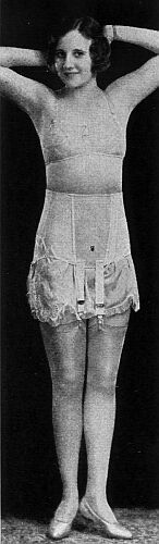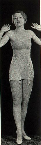 Further models from 1930 (83, 85, 66 and 19). The model 19 is the generic forerunner of the model 143 that many women agree to call the 'classic' Camp corset. Many devotees of this corset never realised that there were other styles. Yet again my husband felt moved to comment on the lady second from the right wearing the model 66 "You dare to photograph me in my corsets, and I'll throw my dog at you !"