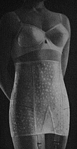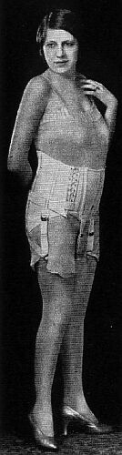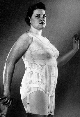 For the fuller, more pendulous figure, styles 38L, B83, B84 and B87 were available as back-lacers or side lacers. In the latter case, rigid bones for spinal support could be inserted. Such corsets would never fully control the waist, they simply pulled the abdomen back where it belonged and left the midriff bulge to the base of the brassiere. The resultant figure aspect could be described as 'matronly'.