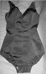Corselettes at the Swimming Pool Spirella latterly experimented with clothes and other accessories including swimsuits. If you can make a powerful corselette, you can design a swimsuit to shape the figure and they did so very successfully. Some of Spirella's swimsuits are far stronger than any foundation made today. They zipped and hooked at the back, and beneath the trendy helanca fabric lay layers of powerful elastic. Boning, hooks and a back or side zip were all part of the suit. Concealed lacing was not a Spirella option, however, it was used by a number of actresses in the 1950's.