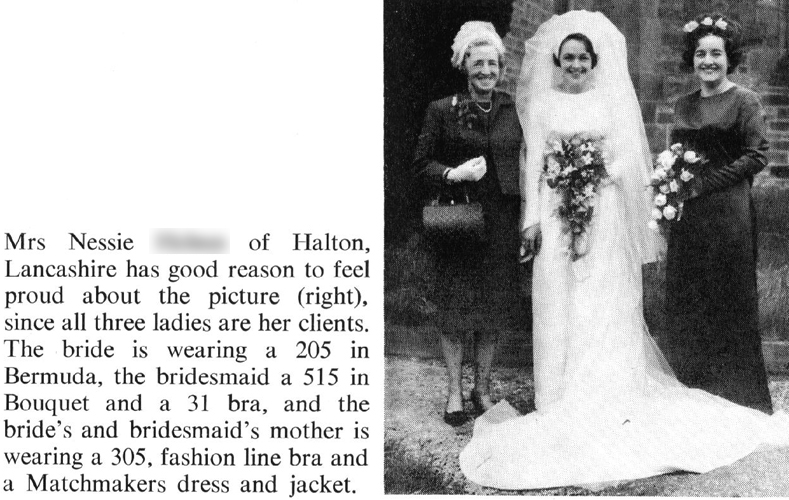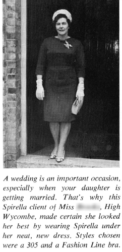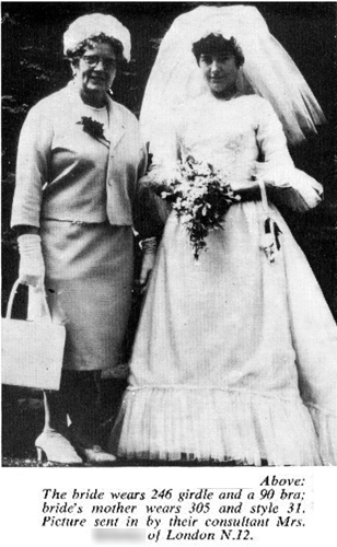 (1967) This middle-aged lady is wearing a corset that, the article suggests, just might have been specially bought for the wedding. |
