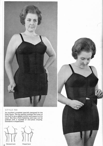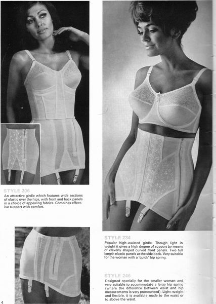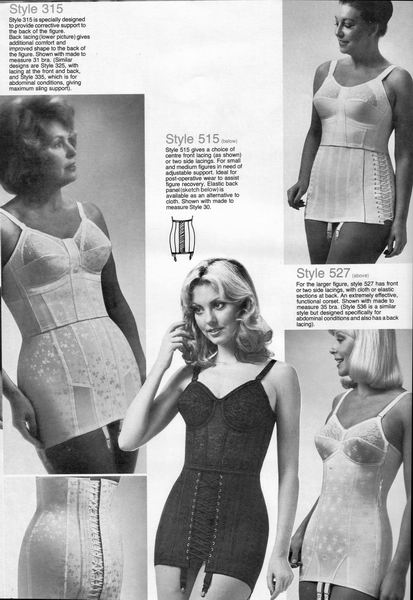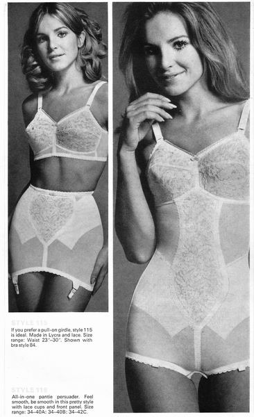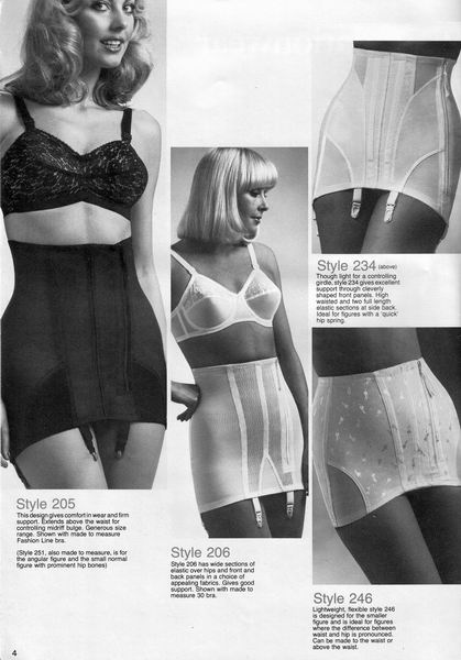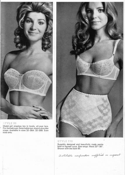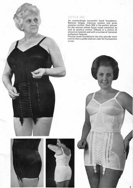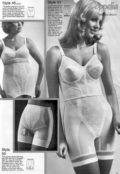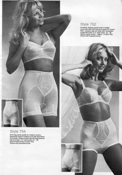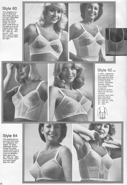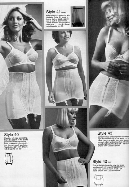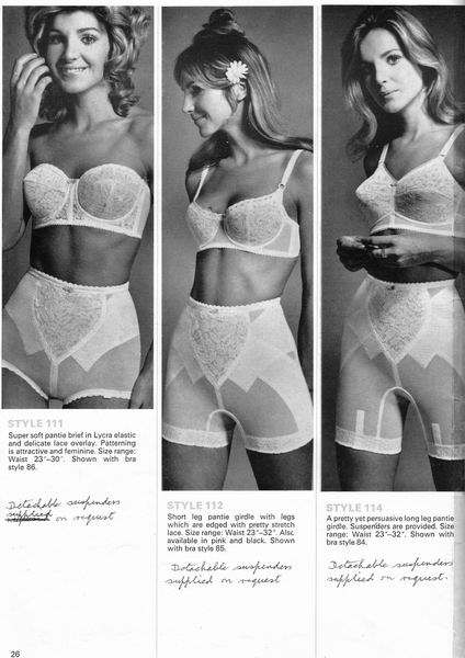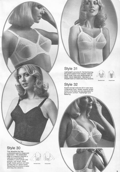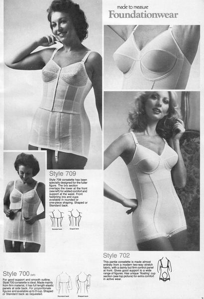 The catalogues from which these scans were made are undated, however, the style is very much late 1970's. They may have been issued as late as 1981, however, the photographs and models are definitely from a few years before. One of the catalogues that belonged to an ex-corsetiere is covered in annotations such as "not available", "discontinued" or "not available in black". The world of corsets as a fashionable garment had ended. Indeed, the very mention of the word 'corset' is abandoned in favour of 'laced foundation'.