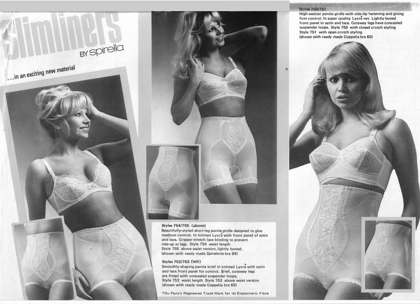 The following images are taken from the last two catalogues ever to be produced by Spirella. For the the following years, until Spirella was sold to Spencer in 1988, the corsetieres had to rely on these catalogues and examples from older catalogues. Poorly photocopied notices, mainly announcing discontinued designs were all the poor corsetieres received to help them sell their wares.