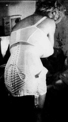 He had spent close to 10 years since the rise of “contact’ magazines trying to make contact with individuals like himself or women interested in being laced into corsets. Like this he had gained just two male clients. Of the two women who were not offering there “charms”, one was young enough never to have worn stockings or suspenders let alone a girdle or corset while the other was a married woman who had gratefully abandoned the wearing of those items a decade earlier but was being pressed by her husband who had no interest in wearing corsets himself but was keen for her to start wearing real corsets She who had been a photographic model and posed very professionally always in the presence of her spouse. My friend had agreed with both women to make them corsets for no cost on condition that he could measure them for corsets and that he could carry out fittings, as needed which they would then pose in for photo modelling sessions.
