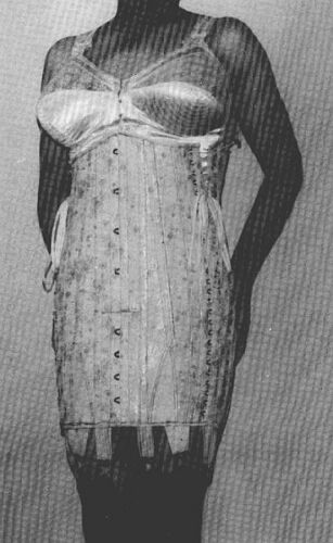 So I opened the door to call to him and saw that his door was already open. He had been far quicker than I had been and was already in his sewing room. I called to see if he would help me with my lacing in and with my suspendering. He came along, looking for all the world as if he was one of the models about to participate in one of Spirella presentations to its agents. As in his photo he was wearing a deep long line bra, filled out with falsies, and a blonde wig. I was amazed at what I saw and was surprised I didn't feel shy at the sight. Indeed, in the context it seemed quite a natural progression in our evening and I felt that at last I had found a true confidante for my compulsions. This was the first time I had seen anyone outside my family so attired.
