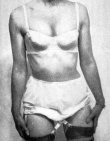 While there were clearly quite a number of men like us, and thanks to Ivy Leaf’s web site I now know Simon was “out there”, in 1982 “our world” was still very, very small and secretive, but still full of co-incidences and surprises. As the course of the conversation turned I said how in the early days of my corseting I had sought other items of female apparel and bought in the lingerie counter of department stores “for my wife”, such as a matching set comprising camisole French knickers and waist slip in lace-trimmed “Antron” satin. At first I fitted them all, over my corsets and stockings with my high heels but, as the regularity of my ability to corset myself all day increased, so did my desire to partially “dress up” decrease, and it never revived. Corsets, suspenders and stockings were, and are, enough for me.
