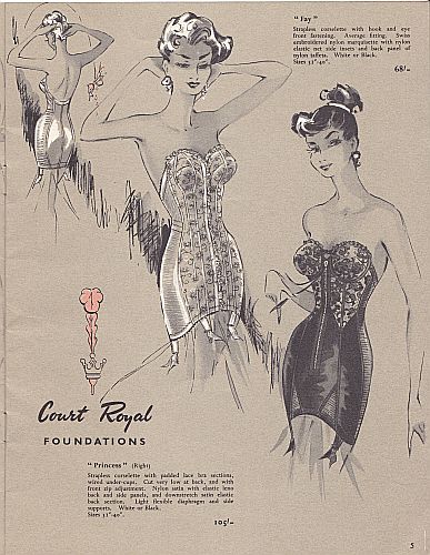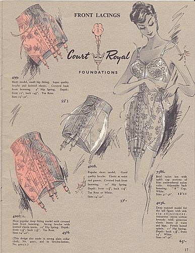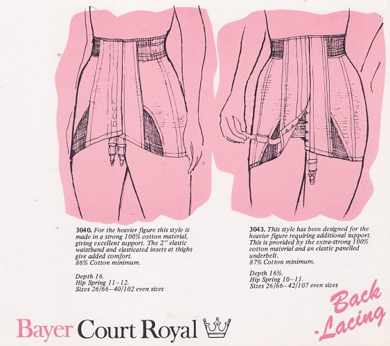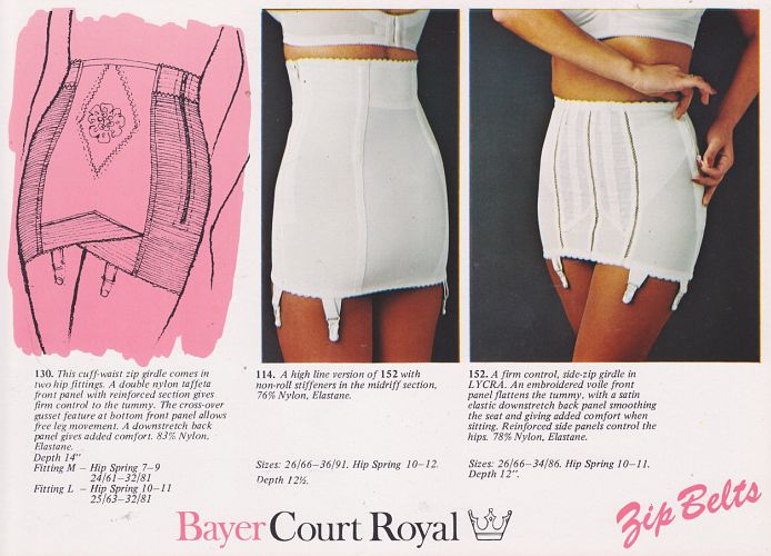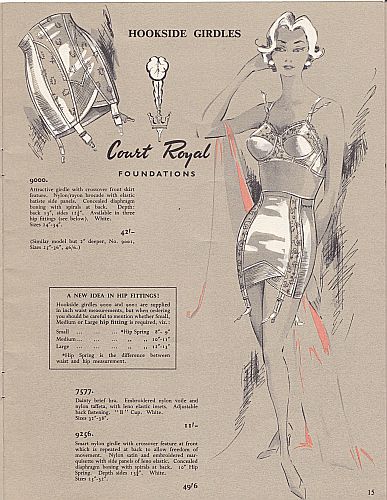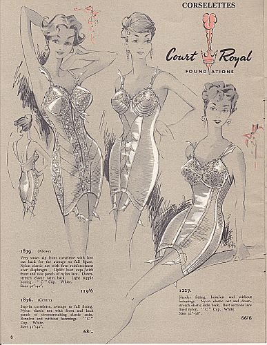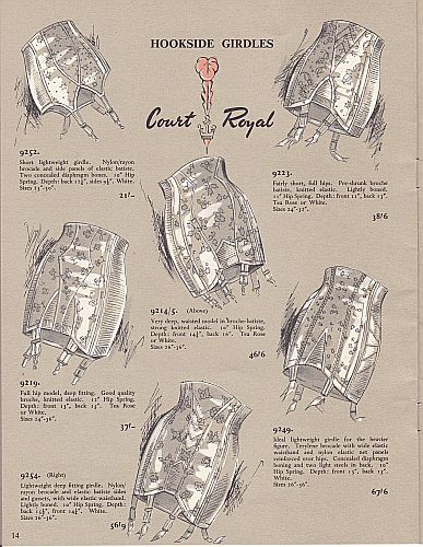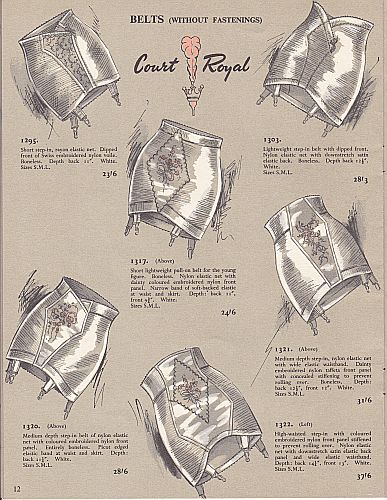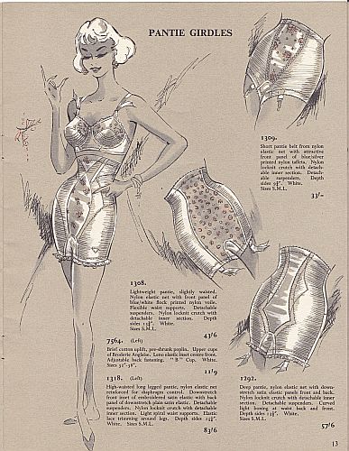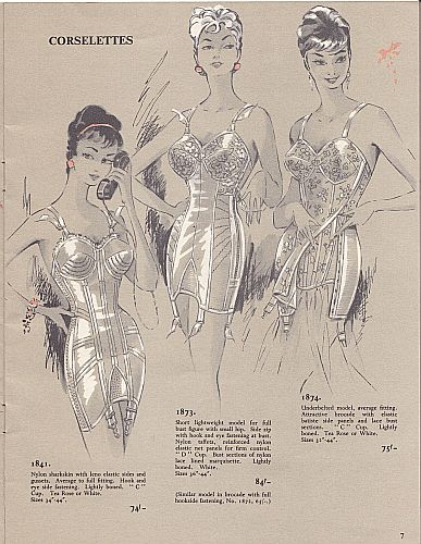 From 1977, regard a few pages of their catalogue and note the decline in the quality of the catalogue, the artwork and the foundation garments themselves.