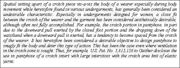 crotch inventor Harvey Williams (4,236,257 December 2, 1980) observed that: