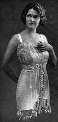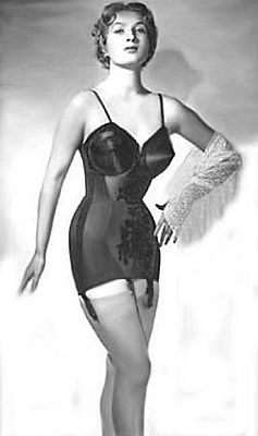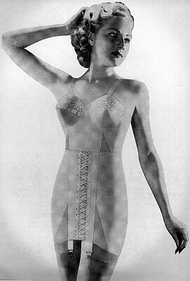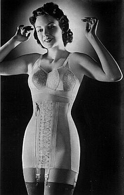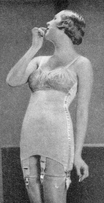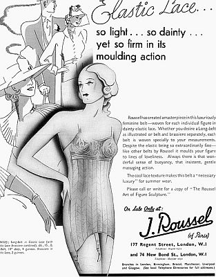 The corsets that grace the left and right of this text are a 'Redfern' (serious, possible) and a 'Trixy' (hmmm), both purveyors of excellent foundations in their day, but sadly no more.