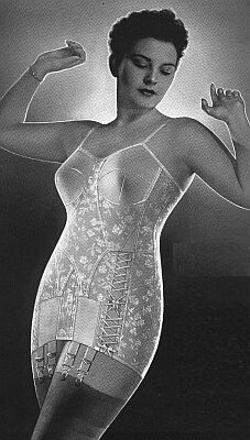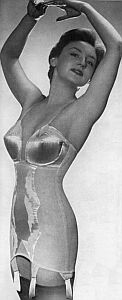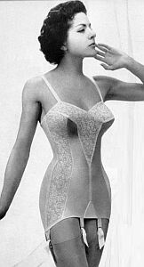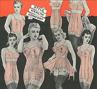 Over the last 100 years, there have been so many brands of corsetry. The established and highly successful brands like Playtex, St. Michael, and Triumph simply keep up with the times and keep on going. Gossard, Berlei, Spencer and Camp struggle on with a diminishing clientele, and Spirella, Charis and Jenyns have vanished from the scene. Most of these brands have been successful for more than five decades, and examples of Spirella still live on in the drawers of the elderly, their owners praying that their foundations last longer than they do, for they can find no alternative. Some brands became so common that their very name became generic. Rubber girdles are almost always associated with Playtex and Camps with fan-lacing corsets. I know of an elderly women, a life-long Camp wearer who emigrated to Australia in later life to be with her children. She still wears Jenyns fan-lacers to this day (although she can no longer purchase them) but still calls them "Camps." Some brands were referred to quite openly. "Have you got your Spencer on Mother?" |