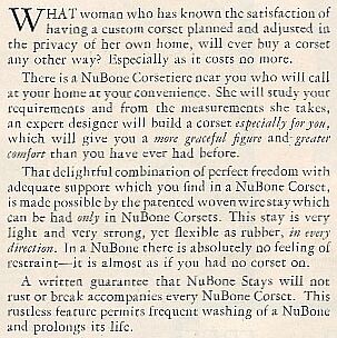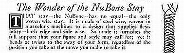 Nubone made a huge play on their spiral steel bones which was a bit unfair since Spirella developed the concept more than a decade before. Like Spirella, they advertised "Not sold in shops" and were proud of their army of corsetieres.