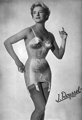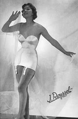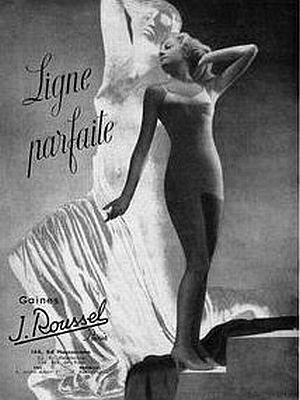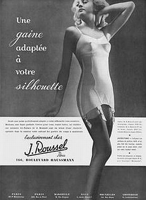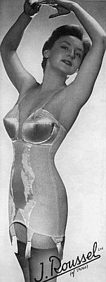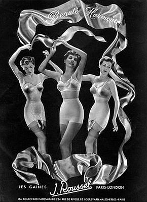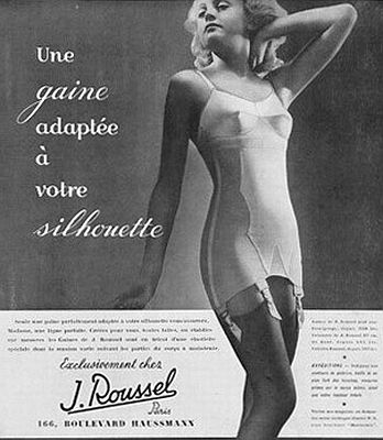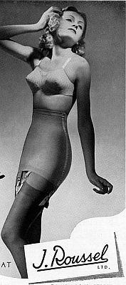 After the war when the pictures below were taken, Dior had decreed that 'the waist' was in and the 'flapper tube' most definitely was out. Roussel responded with some of the most elegant foundations ever made. The models are ex-debutante, young actress generic and the model at the bottom was one of Roussel's favourites.
