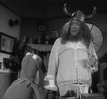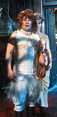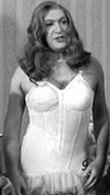 Of course, we have to include Peter Sellers here. He seems to have had a fascination with corsets, witness Sophia Loren in the Millionairess (1960). However, his own attempt is far less glamorous - I mean what can you expect when you're talking to a green frog! (Muppet Show, episode 219 in 1978. Kermit finds Peter Sellers dressed in a Viking's helmet, corset, wig and boxing glove - a grand impersonation of her late majesty, Queen Victoria... but he'd forgotten what she looked like.)