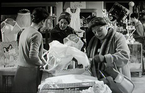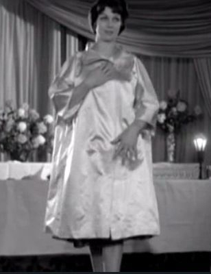 The sequence below from a corsetry modelling show has the model wrapped in a gratuitous satin duster coat. It served no other reason than to grab the attention of the male buyers in the audience.