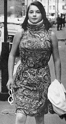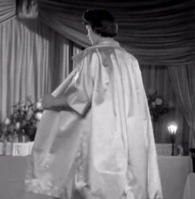 A correspondent relates how at a cousin's wedding, the bridesmaids had to wear culotte dresses. In the fashion of the times, the dresses, including the bride's covered from neck to ankle to cuff. No escape was possible. The design forced the wearer to adopt the new pantie-girdle making any 'comfort break' quite impossible. She remembers hating the whole experience and that (she actually mentions the word) the confinement was in some way humiliating. Nevertheless, the heavy satin outfit brought her many appreciative looks including some blatant staring from some of the men present. We deal with satin below.