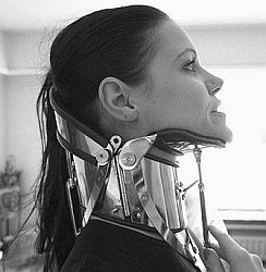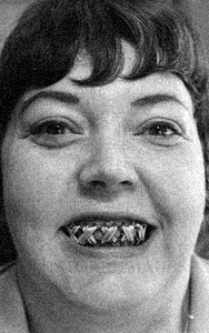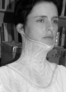 Of course, these can be worn for medical reasons, however, elements of fantasy abound here. Just as the body is confined by the corset, so the neck can be confined also, however, tight-lacing these corsets obviously carries extreme danger. On the left we see an example of teeth corsets! Basically, this lady in 1974 wanted to lose weight and asked her dentist to wire her jaws together, an uncommon, but certainly not unknown practice. He fitted upper and lower braces that were pulled together by means of the strong elastic bands.