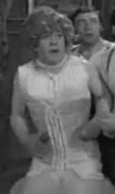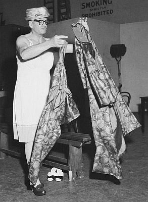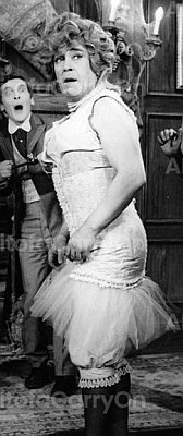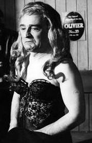 Amazingly, Lawrence Oliver dons a girdle for a 1964 charity show at the London Palladium where a number of famous stars appeared in drag (23rd July 1964 - The Night of A Hundred Stars). Was there any real necessity for the girdle, for frankly it does little to modify his male figure. But we all wore girdles then! In the background of the third picture sits a nervous-looking Kenneth More, apparently not happy with this change from his usual character. The gentleman on the right seems to be enjoying himself!