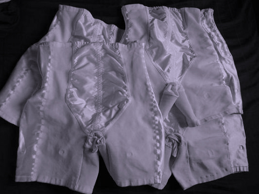 I can remember quite vividly my aunt arriving at our house one autumn evening in a real fluster. Apparently the cord had snapped in her corset and she was completely out of kilter. My mother agreed to fix it for her and without more ado my aunt lifted her skirt to the waist, and leant against the dining table whilst my mother adjusted the lace and tied off the broken ends. My eyes stood out like chapel hat pegs in sheer amazement! I can still visualise the sight of my mother fumbling inside those magnificent pale blue directoire knickers! In this strictly PC but enlightened age it is almost unbelievable that this actually happened but it did.