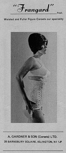 I mentioned Gardeners previously, they were in Bransbury Square, Islington. When I went there, the only person I met was Mrs. Norris, who was very nice and very sympathetic. I later met her again when she was working under her own name from her home. She had purchased some of the machinery from Gardeners when they sold up, she in fact died only a couple of years ago. Although she made some nice looking corsets, she never managed to make them fit in quite the same way that Mary had done.