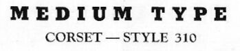 Most famously, the 3-series are corsets. Latterly, the back-lacer would become the 315, the front-lacer, and by far the most popular garment made by Spirella, the 305, and the front and back-lacer, the 325. The abdominal corset on the right would become the 335.
