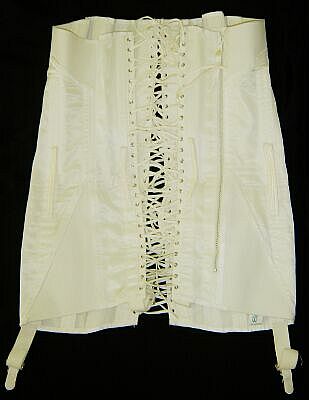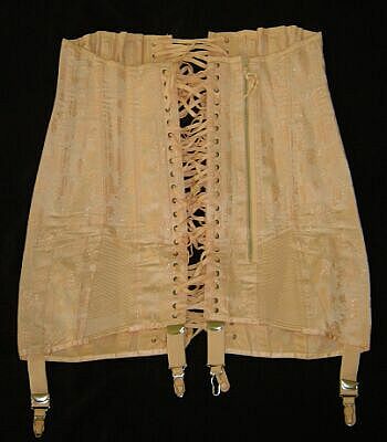Long corsets are still with us. Two of the corsets described below in the 'weighty' section are 53 cm (21") long in the back. Spencer regularly advertised corsets of this length and still makes them today and, of course, being a bespoke house, a taller lady would have ordered proportionately longer corsets. I know of one very tall Danish lady whose corsets were an amazing 16" below the waist and 7 " above the waist at the back. That's 23 inches (58 cm) in total! We met this lady on a Nile cruise and, despite the searing temperatures outside, she rigorously maintained her heavy stays, for indeed, she needed them. An ailing back required all the support of the corset if she was to participate in the interesting excursions; which she enjoyed to the full. I mention this, since ultra-long corsets usually can be classed as surgical supports.