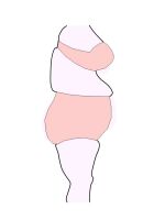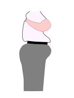 WRONG: The lack of a proper foundation garment, and far too tight a belt results in severe straining of both the skirt and the blouse. "Football Tummy' is the result. |
