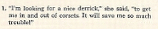 In Scandinavia, the tall girdle was very much in demand in the 1950's and 60's. The high-waisted girdle was not without it problems, as illustrated in the famous 'Mrs. Merrick bought a derrick' cartoon.