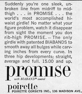 “I used to visit my aunt several times each year in the late 1960’s. She must have been about 65 then. She always kept her cupboards open, and lying there were her M&S girdles. These garments were replaced by pantie-girdles in 1969. I remember the year since I went off to university then, and she gave me five pounds”.