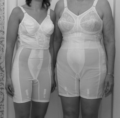 Although these pictures are relatively recent, they illustrate the American dream era of the early 1960's where mother and daughter could be wearing exactly the same foundation garments, albeit in slightly different sizes!