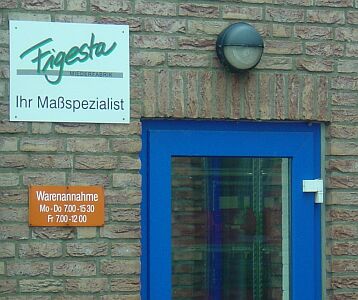 It's wonderful to know that made-to-measure corsetry is still thriving in Germany. Herr Schröter (the Director of Hakupa the orthopaedic appliance company that now owns Figesta) invited us to visit the factory in May 2006. Frau Schäfer (Head Fitter) who has worked for Figesta for 15 years showed us the cutting and sewing rooms, measured me for two garments and was kind enough to answer all our questions. We recount below the history of the firm, the factory as we saw it on the tour, and the fitting and ordering process. We are extremely grateful to Herr Schröter and Frau Schäfer for their courteous explanations and help.