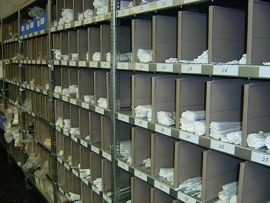The present factory is situated in a typical, modern industrial estate that can be found in a hundred European towns. Quite anonymous, but new, clean and airy, the entrance to the establishment is quite unexceptional, and, on entering the offices, one could be forgiven for asking what was manufactured here, transistors or trainers ? A potted history of the Hannoversche Korsettfabrik on one wall is the sole give-away. |