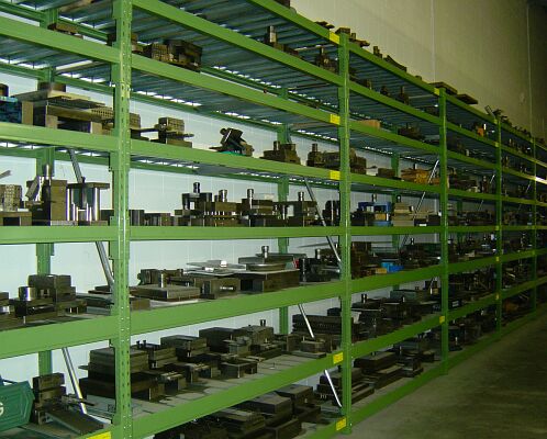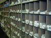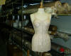 | Manikins displaying Figesta's wares appear in odd locations, strangely juxtaposed with fuse boxes and complex metal jigs. Figesta historically made everything required for the corset from bones to eyelet holes, but these days, a number of parts are purchased and the old jigs and dies stand as a silent reminders of former days. Thousands of bones (left); a fortune in dies hardly used (right) |