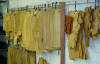 | Once through the doors of the factory, however, there is no mistaking the purpose of this enterprise. The first room stores huge rolls of materials, brocades, coutils, sateen drill and lace facings. The table top at the end of the room is covered in corset pieces and the floor in discarded trimmings, for this is the cutting room. |